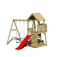 FUNGOO Spielturm Maxi Funny Exposure, Schaukel, Rutsche mit Wasseranschluss, Sandkasten, Brückenverbindung