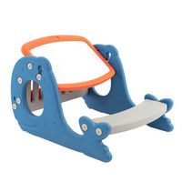 AIYAPLAY Rutsche 4-in-1 Kinderrutsche mit Schaukel Basketballkorb Klettergerüst, (Kleinkinderrutsche, 1-tlg., Indoor-Spielplatz mit Raketendesign), für Indoor und Outdoor 1,5-4 Jahren Kinder Hellblau
