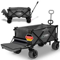 LAWA Living and Lifestyle Тележки faltbar ohne Dach mit Bremse 100kg Traglast 120cm lang verlängerbar (12,4kg leicht, sehr kleines Packmaß), klappbarer Handwagen, Heckklappe, Grau