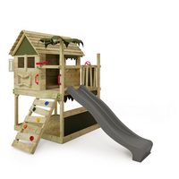 FATMOOSE Klettergerüst CrazyCoconut - Strandhaus mit Wellenrutsche, Schaukel & Sandkasten, (Tropisches Spielhaus mit Sonnendach, Ladentheke & Hängematte, für fantasievolle Abenteurer), extrem witterungsbeständig mit 10 Jahren Garantie*