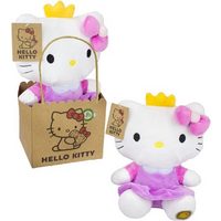 SANRIO Kuscheltier Hello Kitty Plüschfigur 27 cm im lila Kleid mit Krone (Set, 1-St., Geschenk-Set), Edles Design mit Krone – Kuscheltier für Fans und Sammler Geschenke