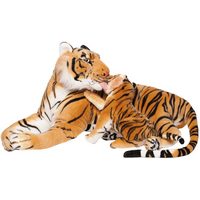 Te-Trend Kuscheltier Tiger mit Tigerbaby Deko Plüschtier Set Stofftier 60cm (Tigermama mit Tigerbaby), dekoratives Tigerpaar