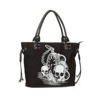 Banned Handtasche Back In Black, Skull und Rosen Print