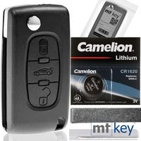 mt-key Klapp Schlüssel Reparatur Gehäuse 3 Tasten + HU83 Rohling + 1x CR1620 Knopfzelle, CR1620 (3 V), für Peugeot Citroen Boxer Partner Ranch 607 Funk Fernbedienung