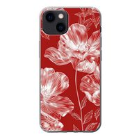 MuchoWow Handyhülle für Apple iPhone 13 Blumen - Muster - Rot - Weiß, Smartphone-Bumper, Print, Handy Schutzhülle Dünn