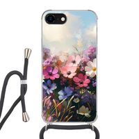 • MuchoWow Handyhülle für Apple iPhone 8 Blumen - Bunt - Blühend, Tragbare Handyhüllen mit Kette zum umhängen, Handykette Handyband