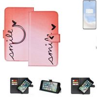 flat.design K-S-Trade Handyhülle für OnePlus 7T, Schutzhülle Handyhülle Hülle cover bookstyle Etui ''smile'' rot