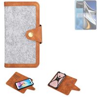 K-S-Trade Handyhülle für POCO X4 Pro 5G, Handyhülle Schutzhülle Filz-Hülle Kunst-Leder hellgrau braun