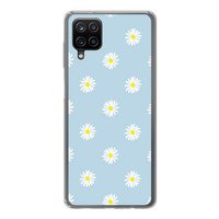 MuchoWow Handyhülle für Samsung Galaxy A12 Gänseblümchen - Pastell - Weiß - Blau - Blumen, Smartphone-Bumper, Print, Handy Schutzhülle Dünn