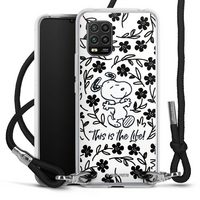 DeinDesign Handyhülle Peanuts Blumen Snoopy Snoopy Black and White This Is The Life, Xiaomi Mi 10 lite Handykette Hülle mit Band Case zum Umhängen