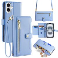 EAZY CASE Handykette mit Magsafe Hülle für Apple iPhone 16 6,1 Zoll, Handytasche Silikonhülle durchsichtig mit Umhängeband in Pastell Blau