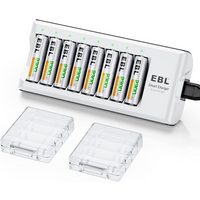• EBL Akku Ladegerät mit 8 AA 2300mAh Akku, Akku-Ladestation (1-tlg., für AA, AAA, NI-MH, NI-Cd wiederaufladbare Batterien)