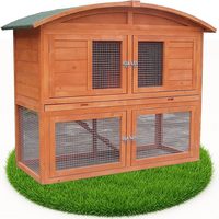 Mucola Kleintierkäfig Runddach Kaninchenstall Freigehege Freilauf Käfig Holz Hasenkäfig, herausnehmbare Schublade