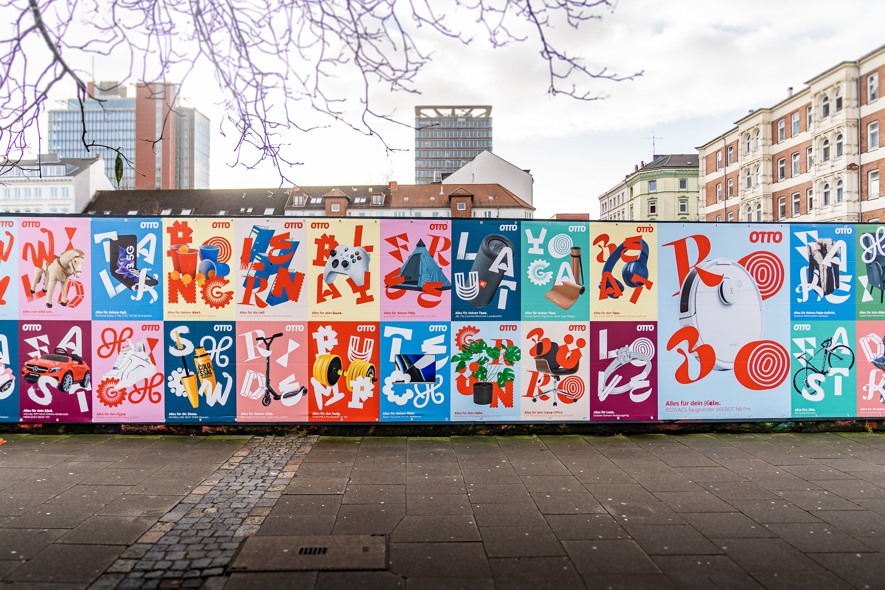 Mit der zweiwöchigen Kampagne zeigt sich OTTO großflächig in seinem neuen Corporate Design, das genauso bunt und vielfältig ist wie das Angebot des E-Commerce-Unternehmens. Deutlich sichtbar im Vordergrund steht dabei erstmals und konsequent die neue Markenschrift „OTTO Play“, die extra für OTTO entworfen wurde. Die Schrift fällt auf, die Typographie wirkt überraschend anders, jeder Buchstabe ist einzigartig.