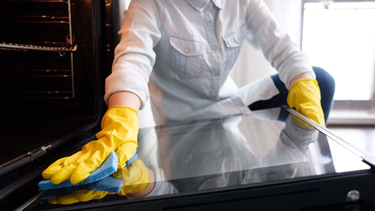 - Wische den Backofen mit einem feuchten Lappen aus, um alle Schmutzreste zu entfernen.