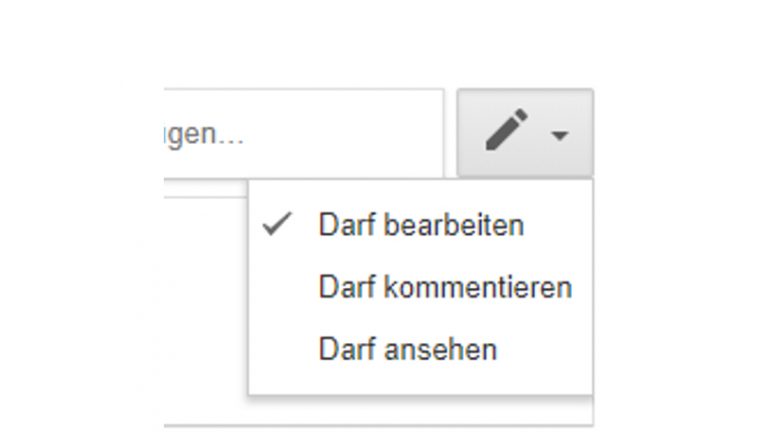 - Klicke auf das Stift-Symbol rechts neben dem hinzugefügten Kontakt und setze im Kontextmenü einen Haken bei Darf bearbeiten, Darf kommentieren oder Darf ansehen – je nachdem, welche Rechte du dem Kontakt einräumen willst. © 2019 Google LLC / Screenshot / UPDATED
