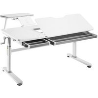 HOKO Kinderschreibtisch höhenverstellbar 54-76 cm, ergonomischer Schreibtisch (für Kinder & Jugendliche, 120x60 cm, neigbare Tischplatte mit Schubladen, stabil & belastbar bis 100 kg, Weiß, Holzfarben)