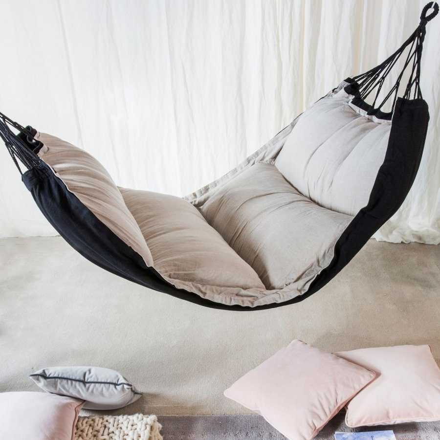 Für die Wohnung eignen sich Hängematten aus Baumwolle – sie sehen besonders gemütlich aus, sind robust und meistens in der Maschine waschbar.