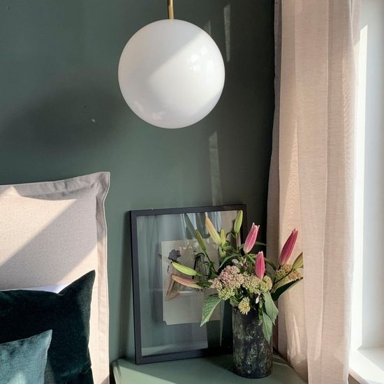 Eine Hängeleuchte ist eine gute Alternative, wenn es neben deinem Bett weder eine Steckdose noch einen Wandanschluss gibt. Zudem sehen tiefhängende Pendelleuchten sehr dekorativ aus. In den meisten Fällen musst du das Lampenkabel verlängern – lass das am besten von einem Profi erledigen.