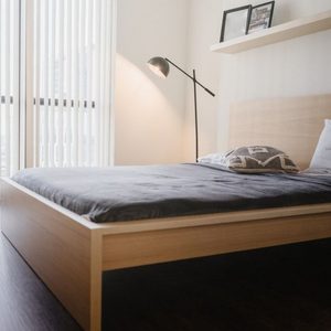 Wandleuchten solltest du nicht direkt über dem Bett, sondern leicht seitlich vom Kopfteil anbringen. So verhinderst du, dass dich das Licht blendet oder dass dein Kopf beim Lesen Schatten auf das Buch wirft. Wenn du keine Wandanschlüsse am Bett hast, kannst du auch Wandlampen mit Netzstecker verwenden.