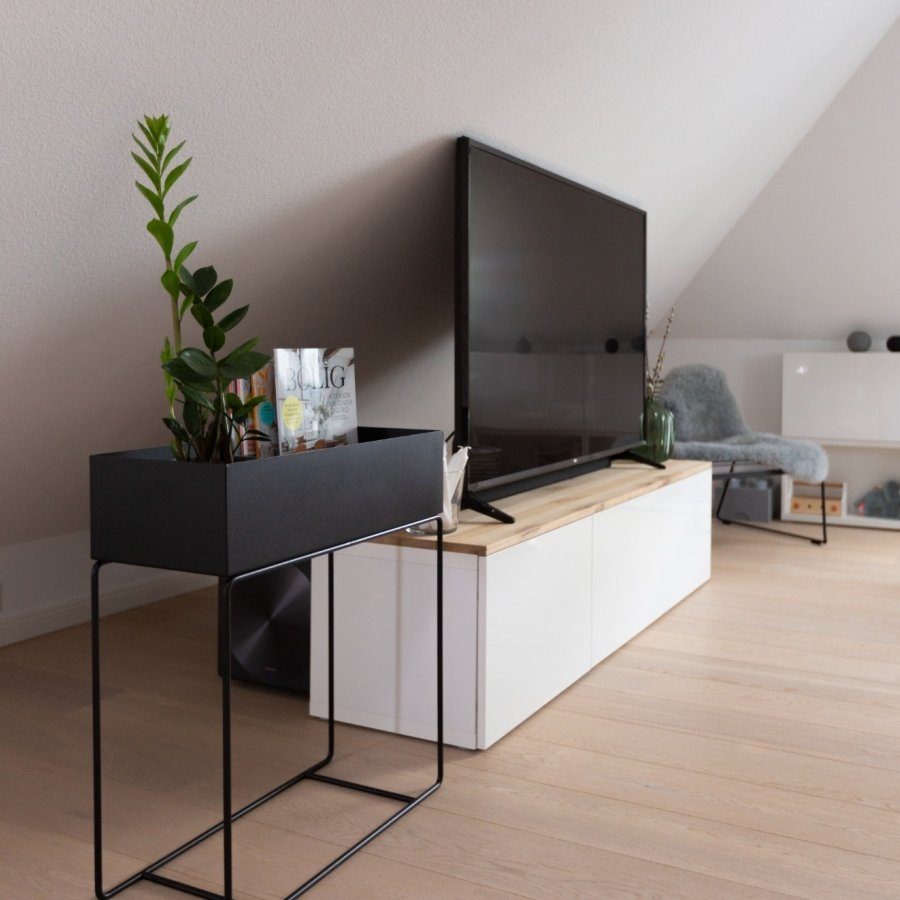 Wenn du ein Wohnzimmer mit Dachschrägen einrichtest, wähle am besten niedrige Möbel wie flache Sofas oder Lowboards. Setze auf einfache Strukturen und eine minimalistische Einrichtung – so wirkt der Raum luftig.